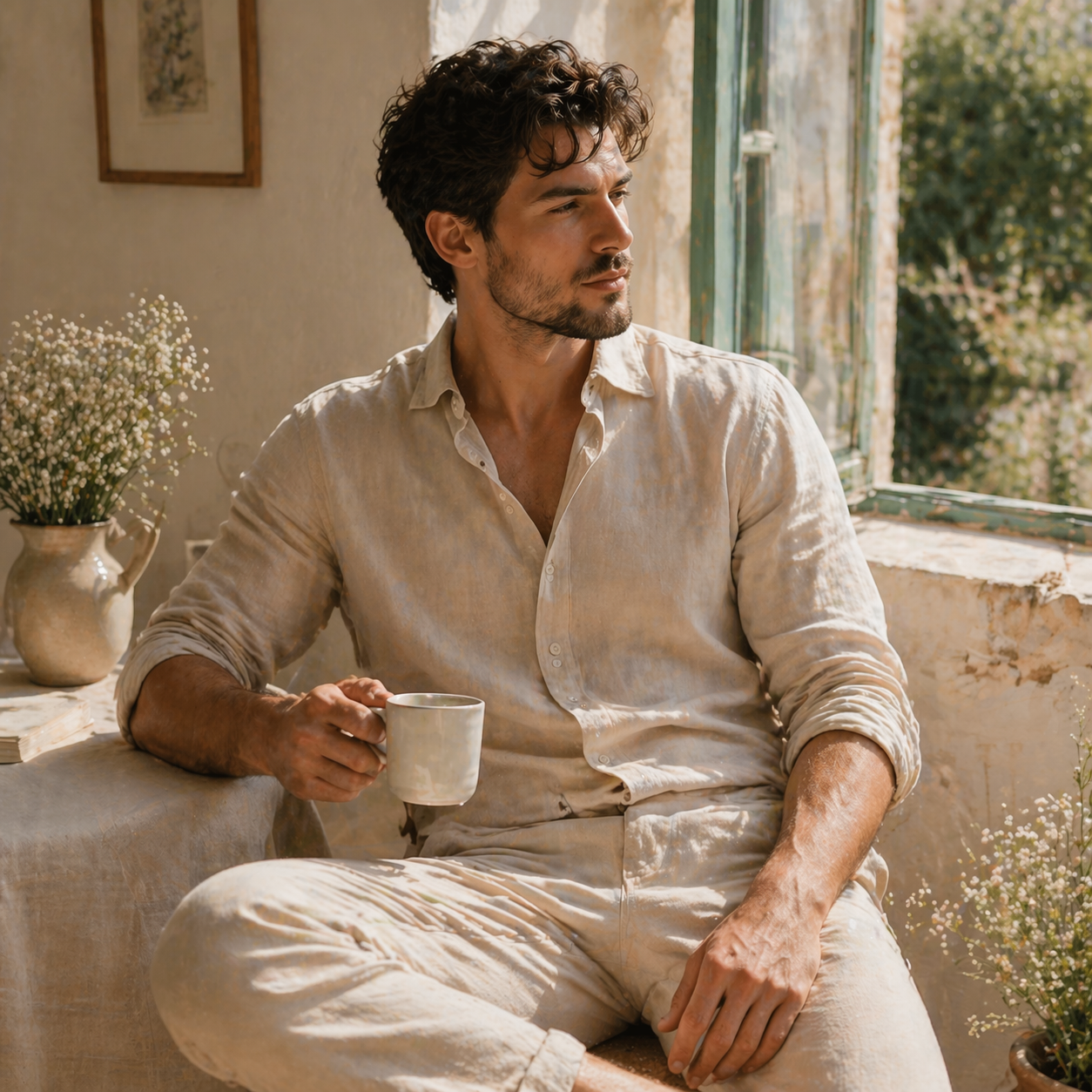 This look captures the essence of natural beauty — clean lines, calm tones, and a floral touch. Perfect for slow mornings and quiet confidence.