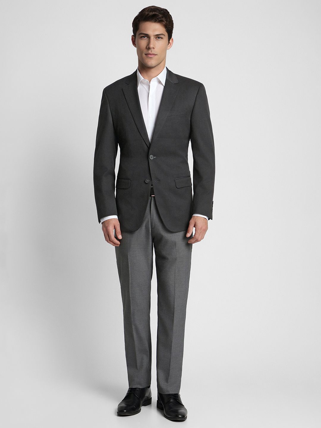 Peter England Men Black Solid Single-Breasted Formal Blazer