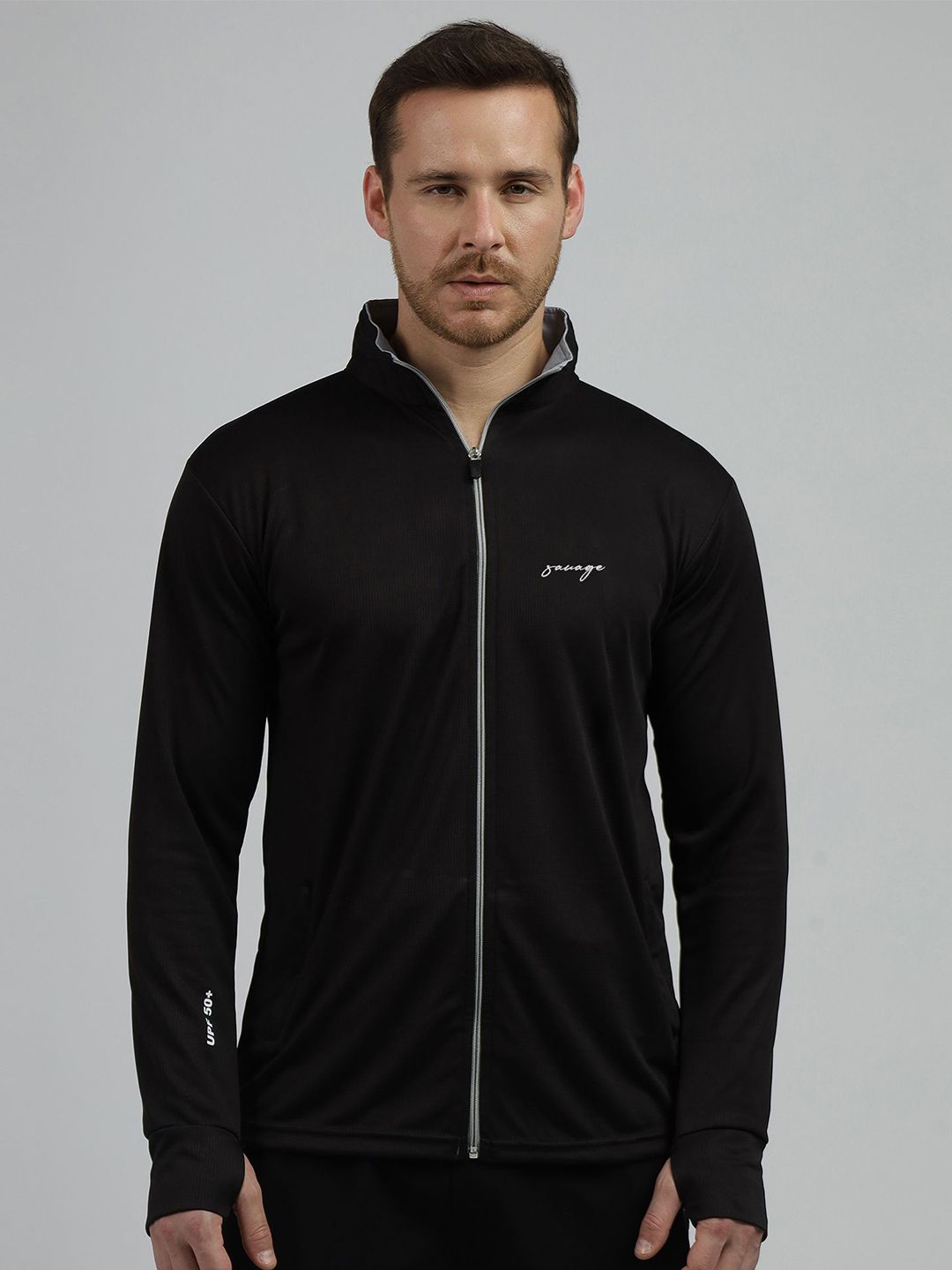 Be Savage Men Solid Sunscreen Biker Jacket with UPF50