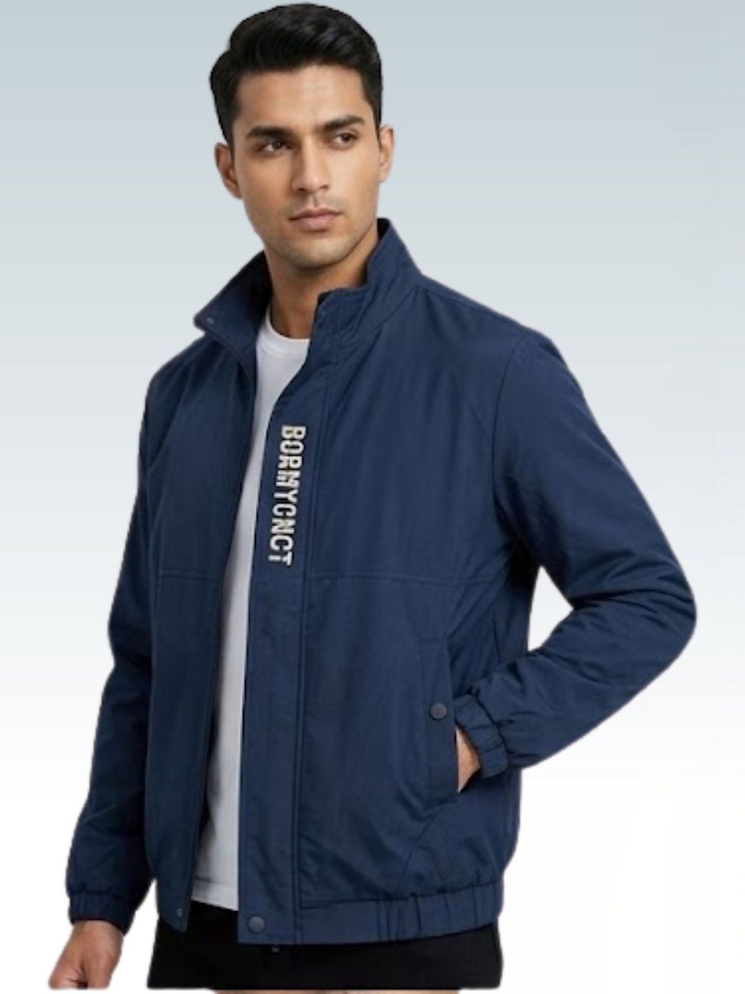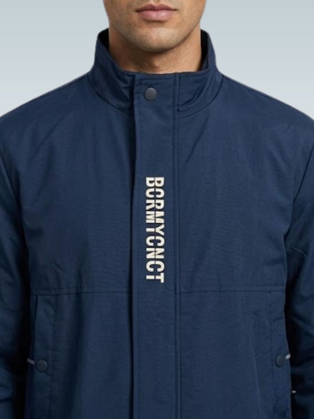MIA FASHION Men Typography Printed Spread Collar Sporty Jacket