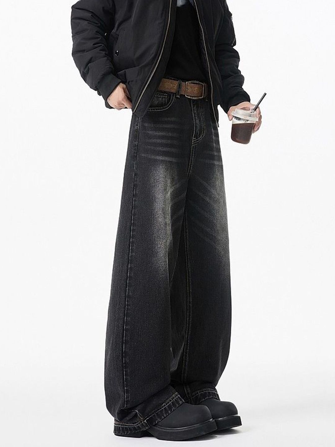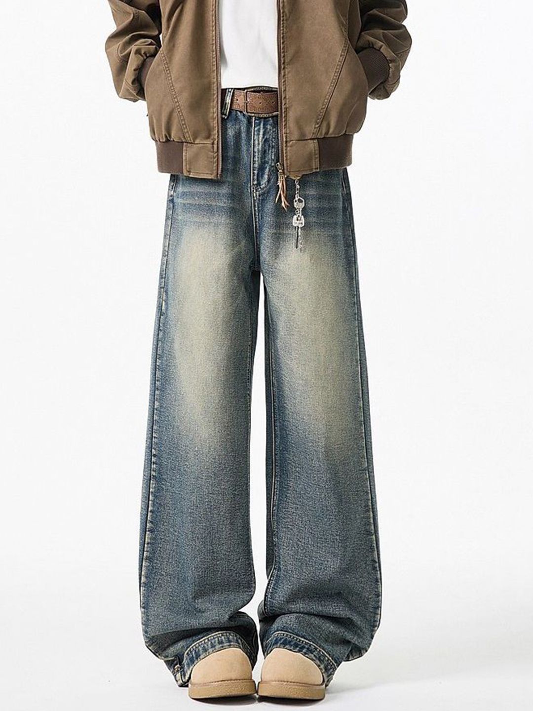 StyleCast x Revolte Men Wide Leg Mid-Rise Light Fade Jeans