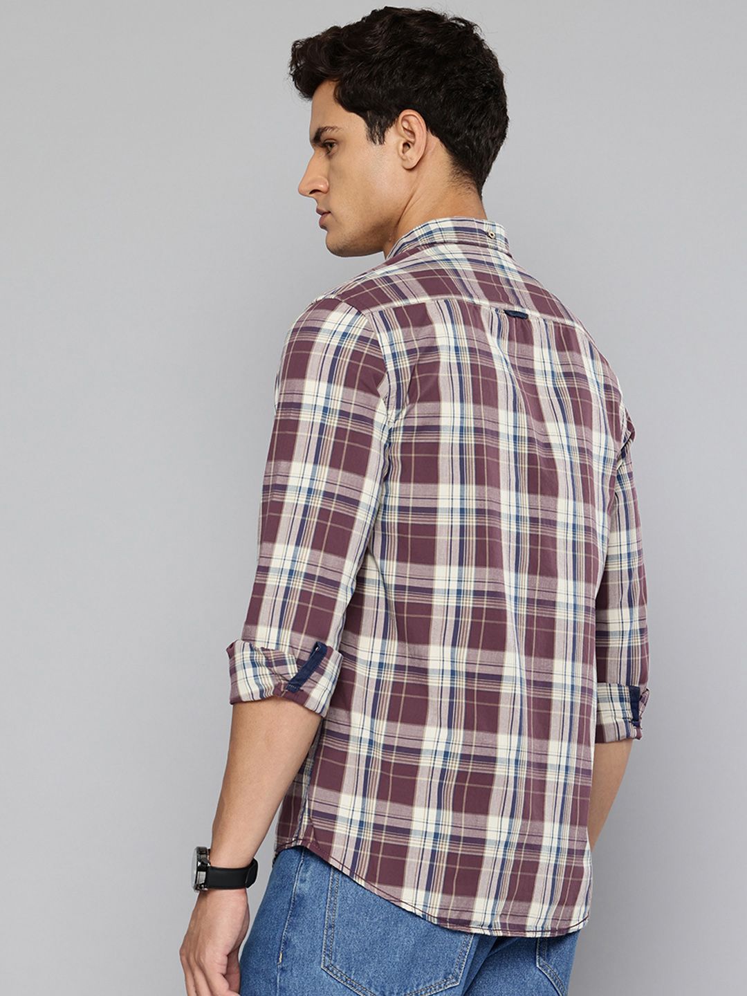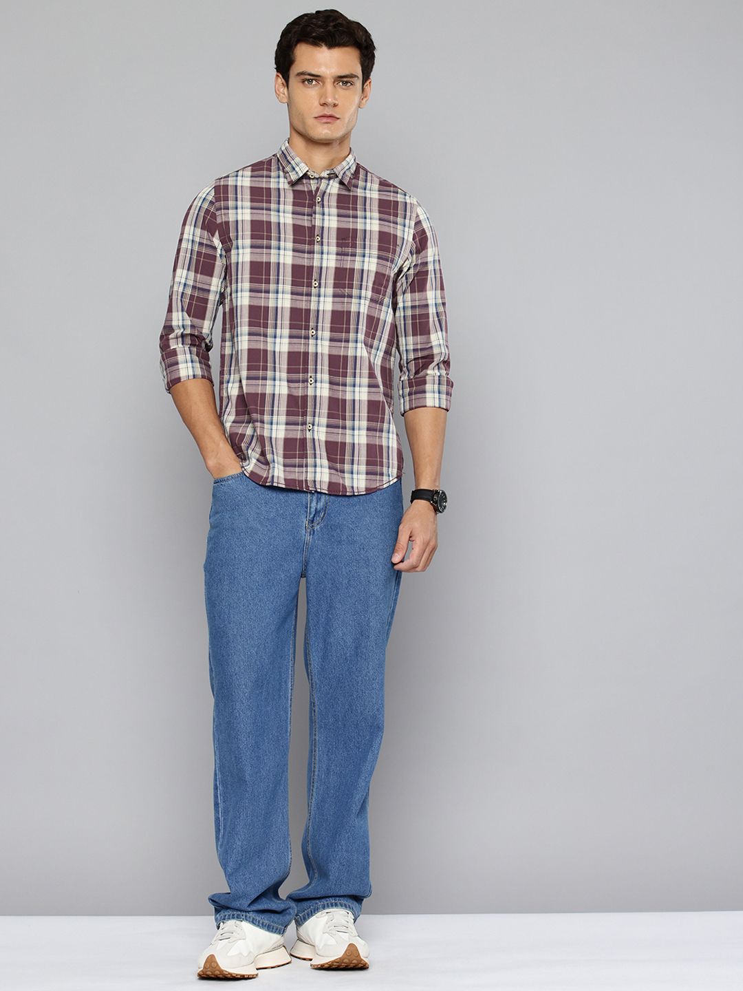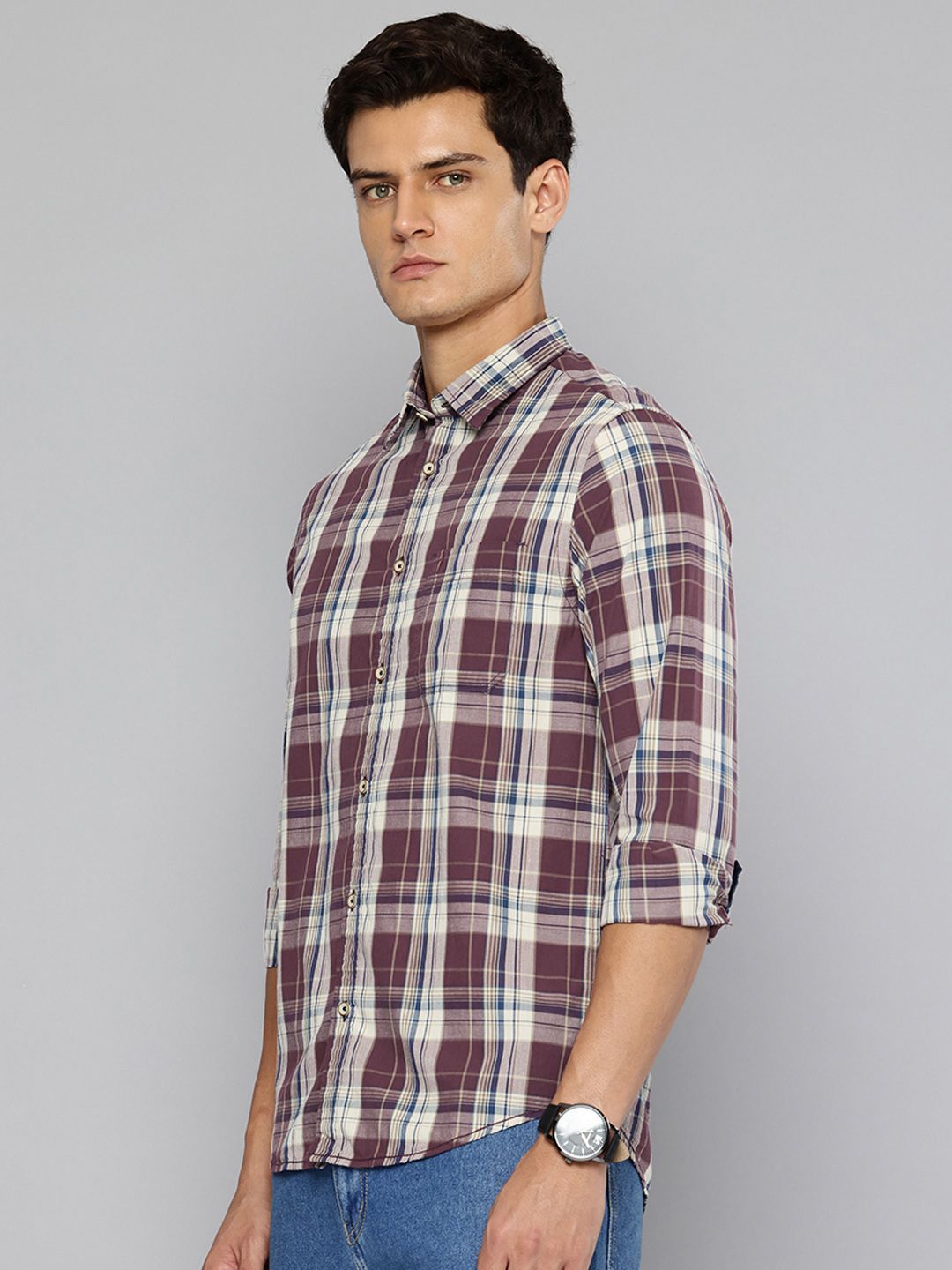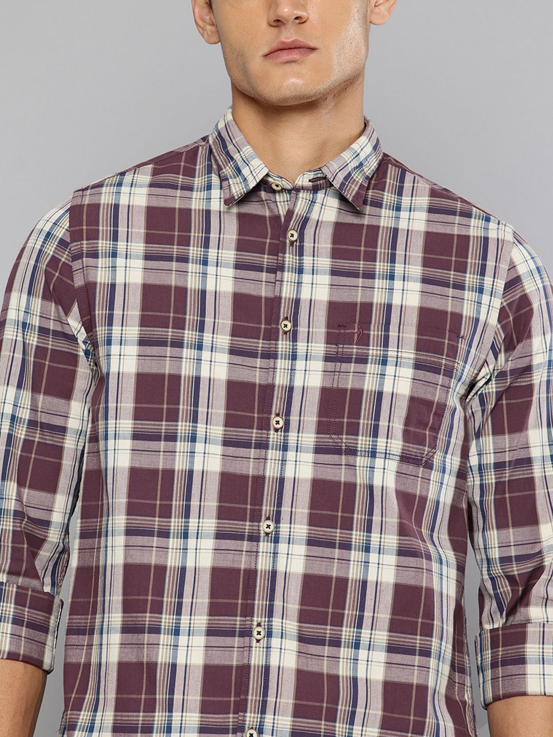 HERE&NOW Men Slim Fit Tartan Checked Cotton Casual Shirt