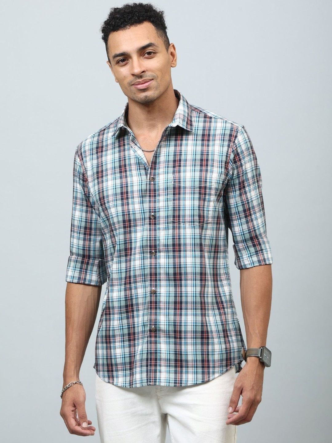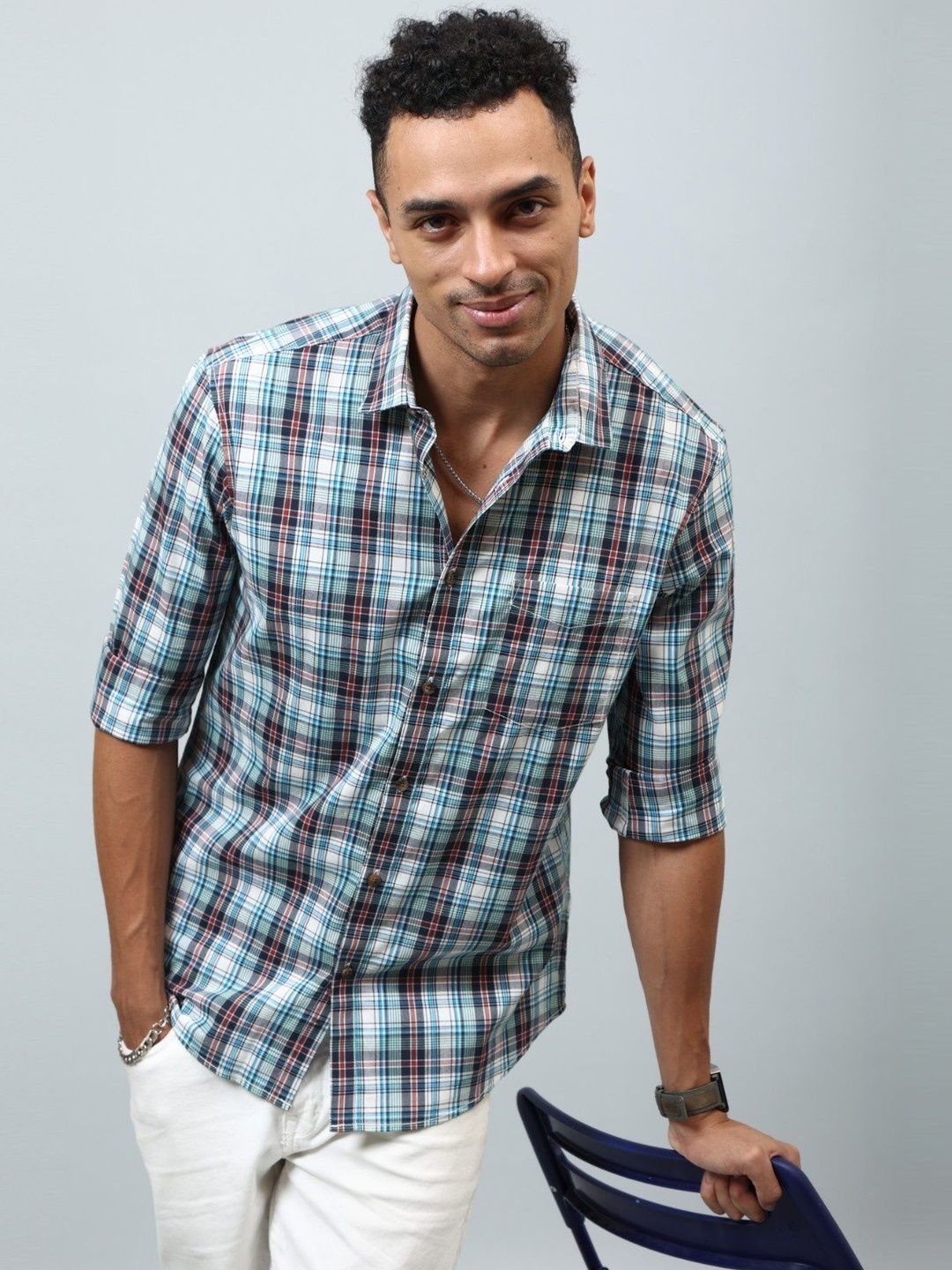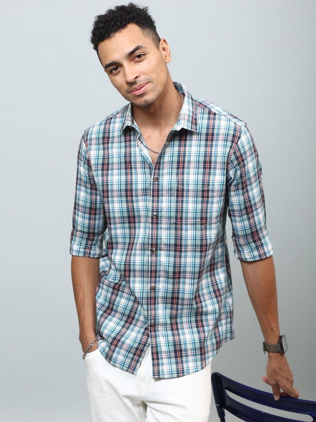 HERE&NOW Men Slim Fit Tartan Checked Cotton Casual Shirt