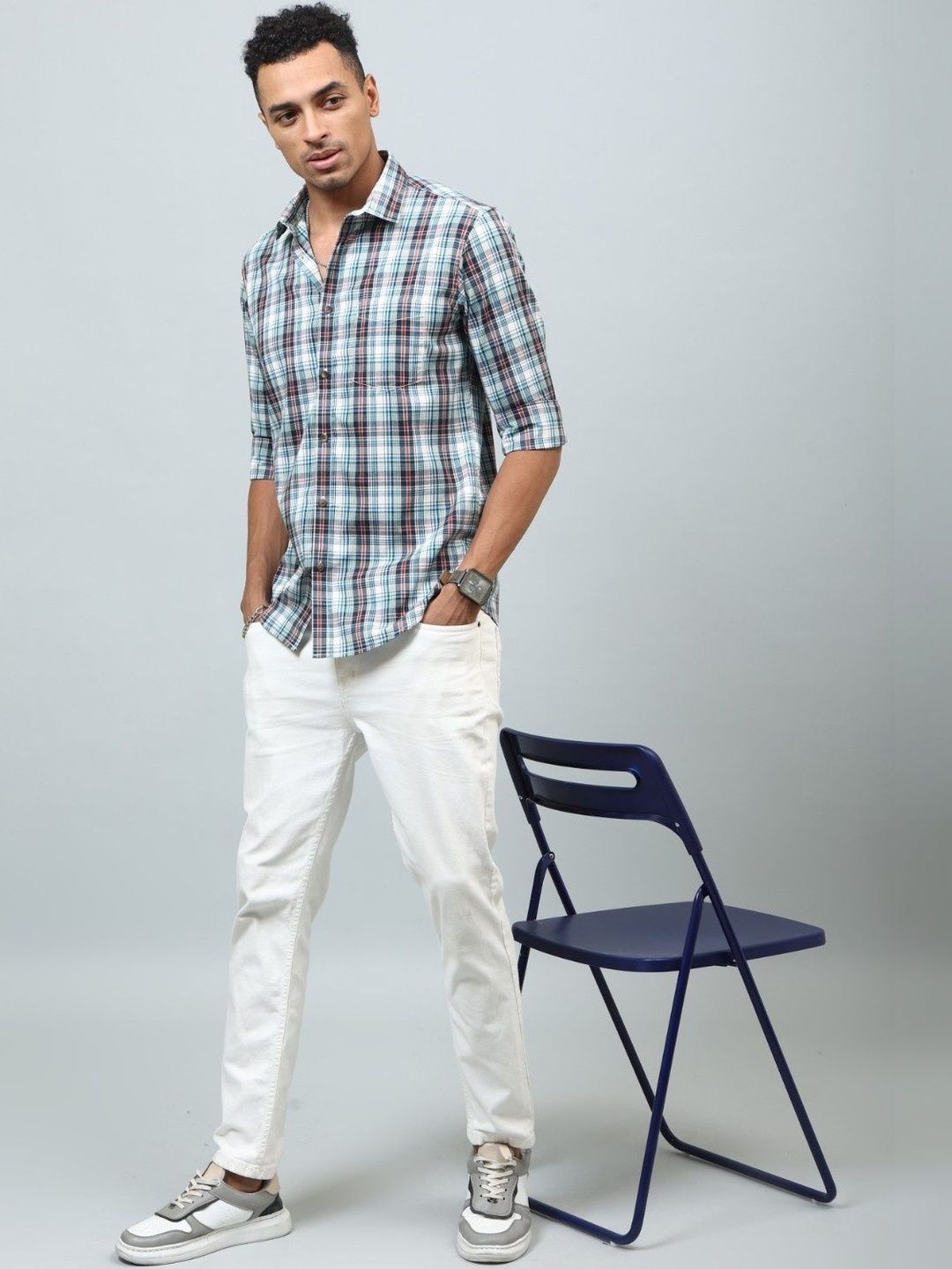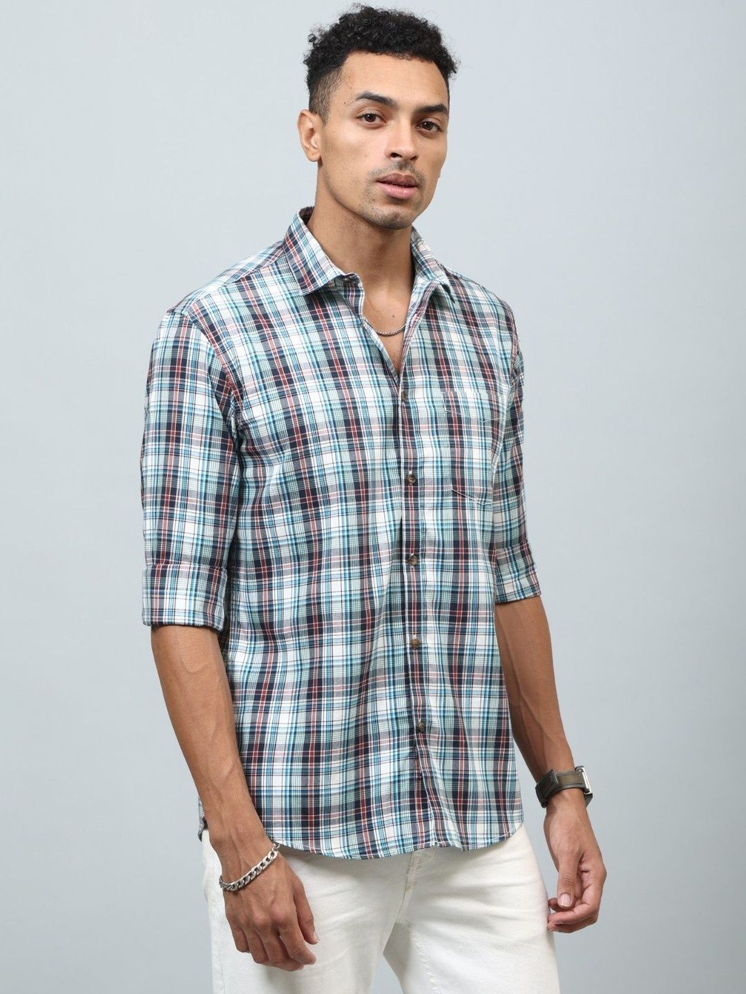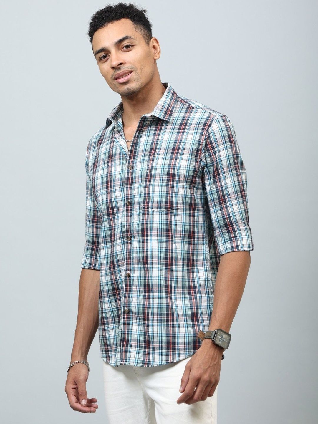 HERE&NOW Men Slim Fit Tartan Checked Cotton Casual Shirt