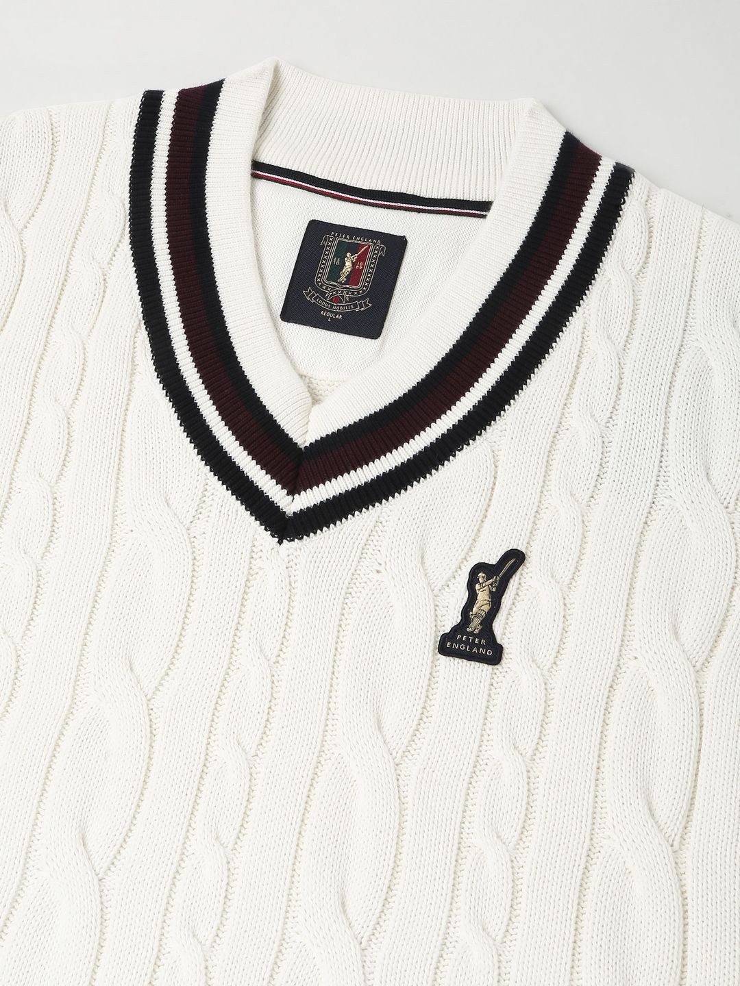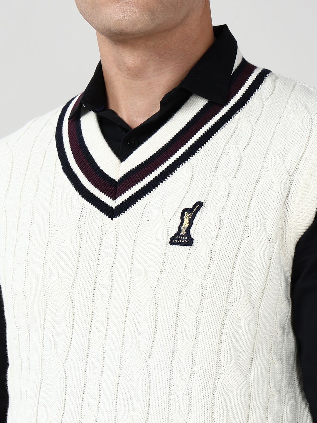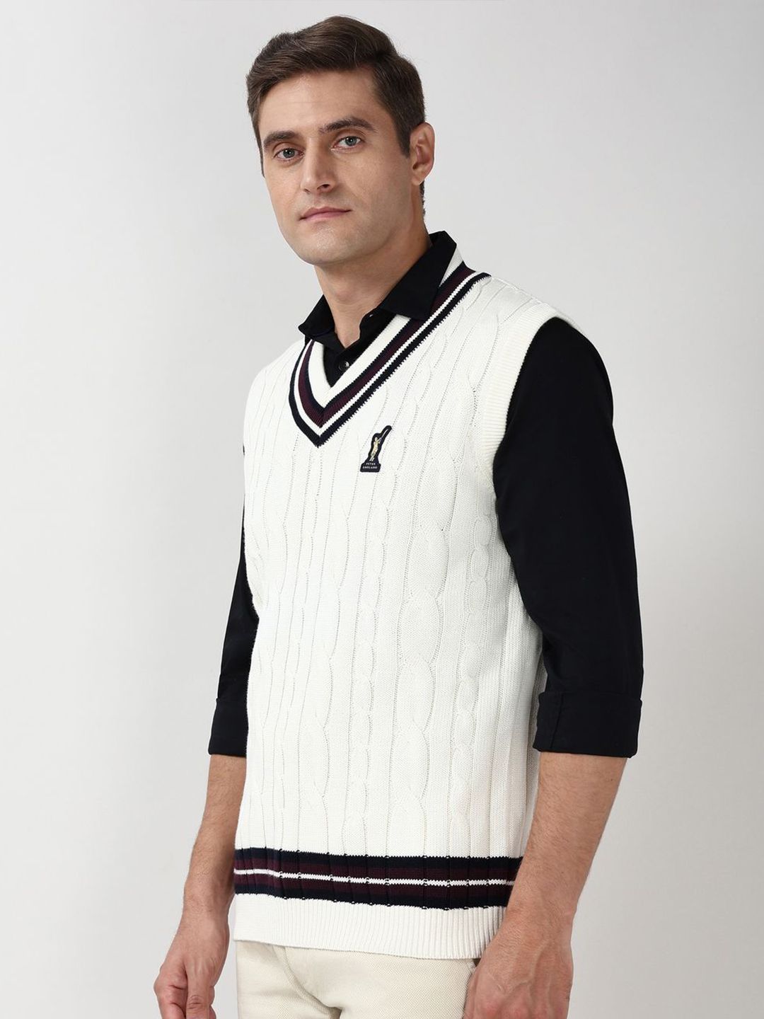 Peter England Casuals Men Cable Knit Cotton Sweater Vest