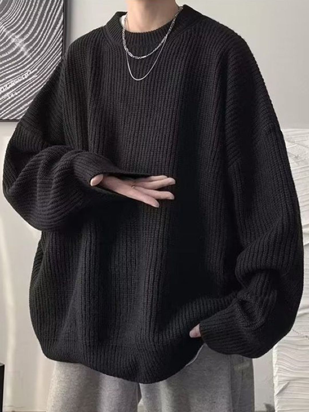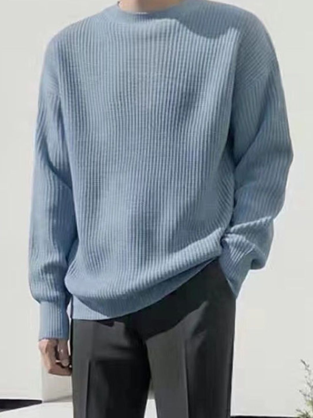 Ribbed Round Neck Pullover