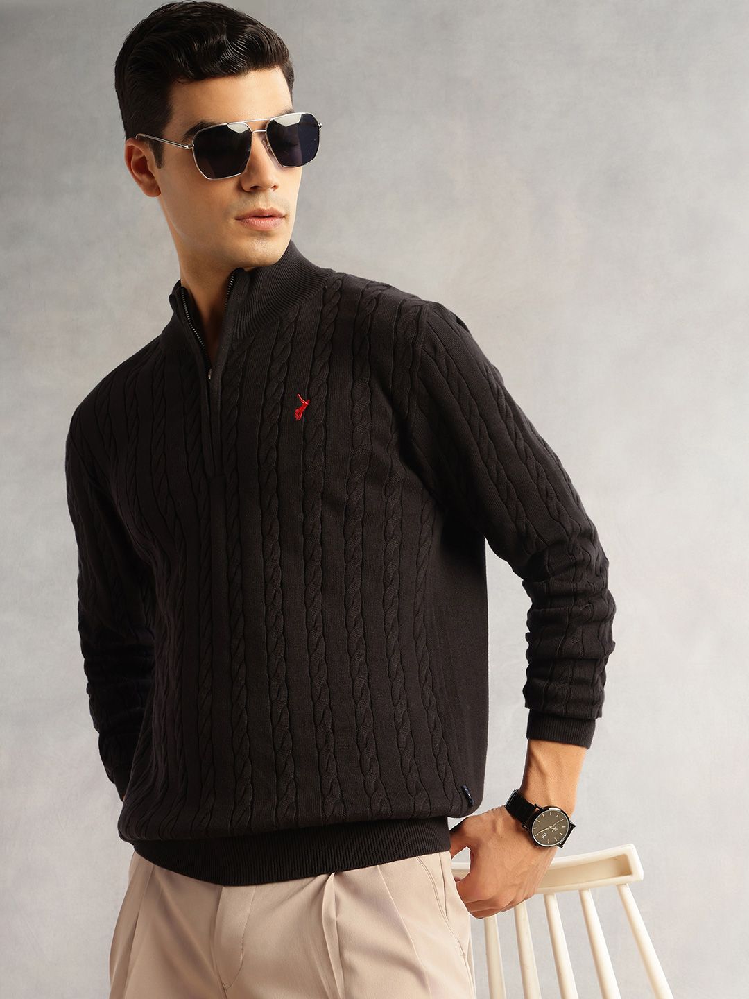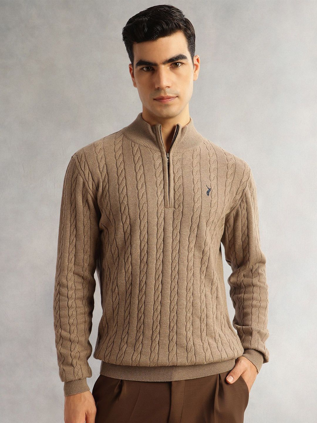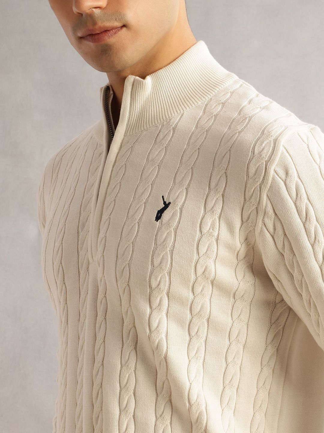 Thomas Scott Men Pure Cotton Embroidered Cable Knit Pullover Sweaters