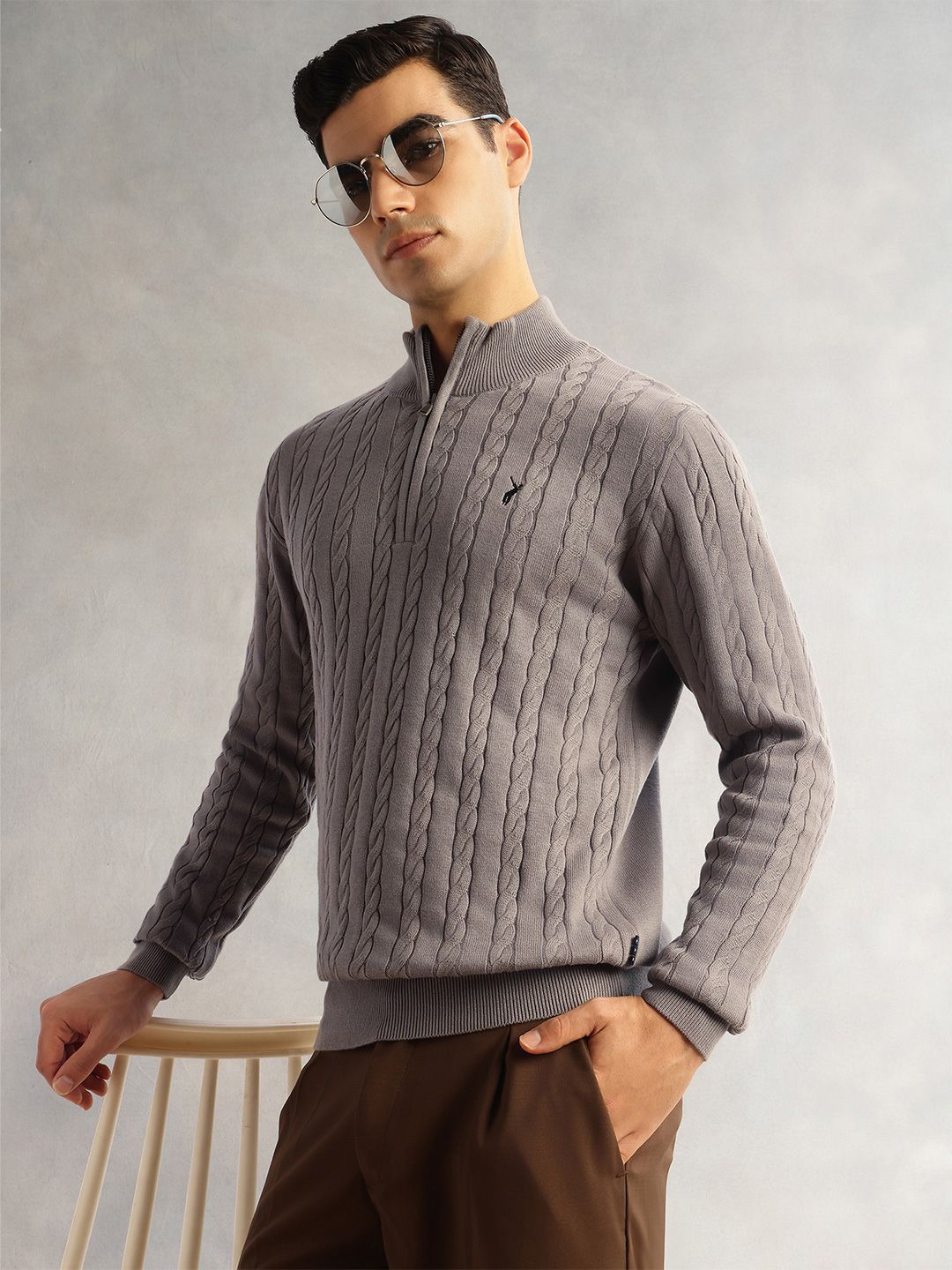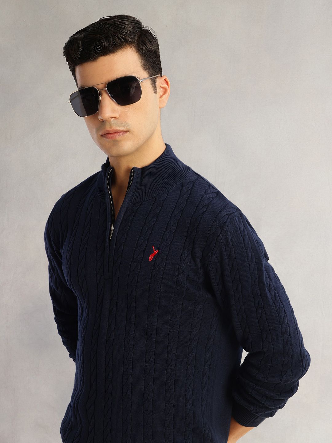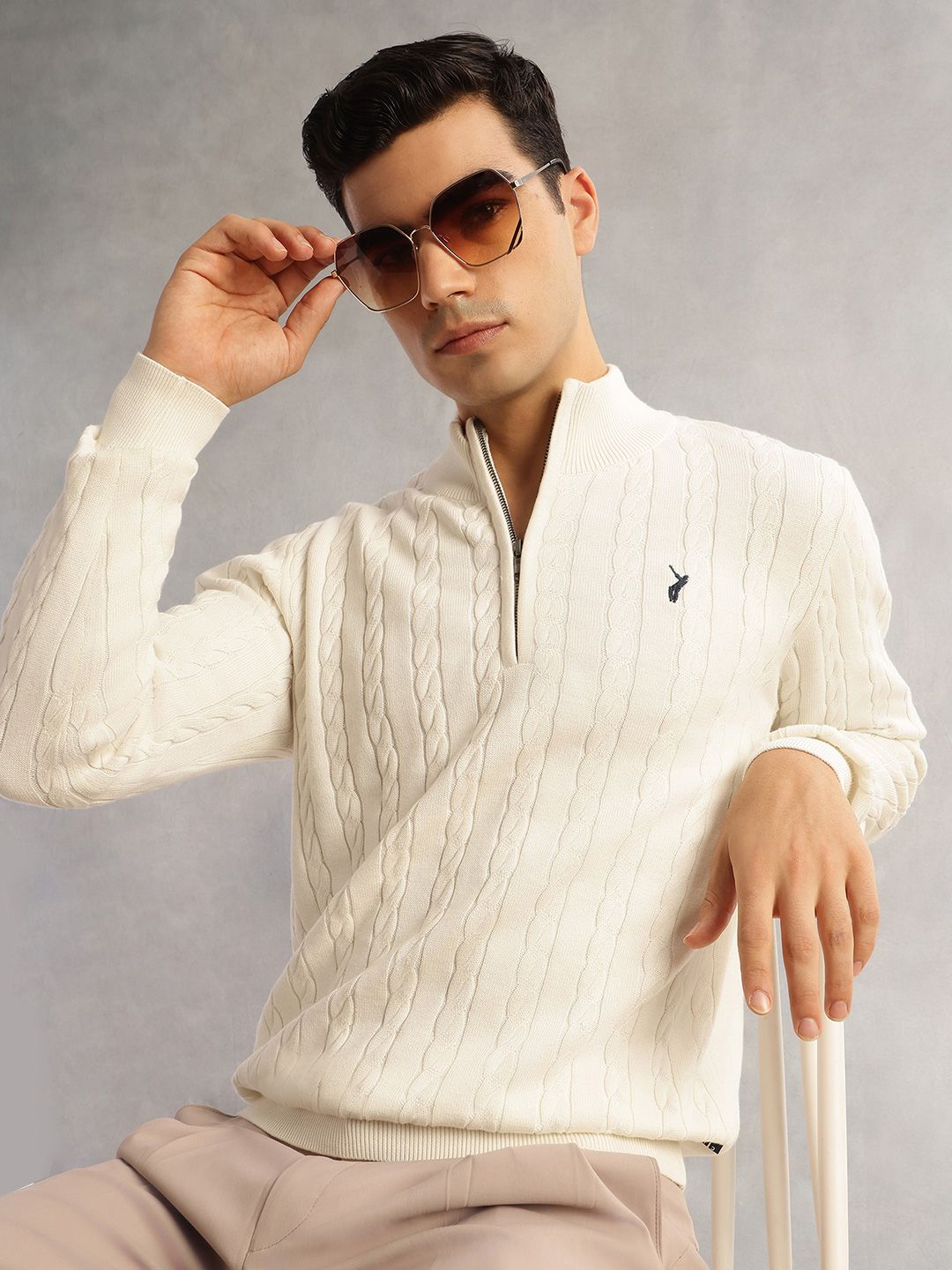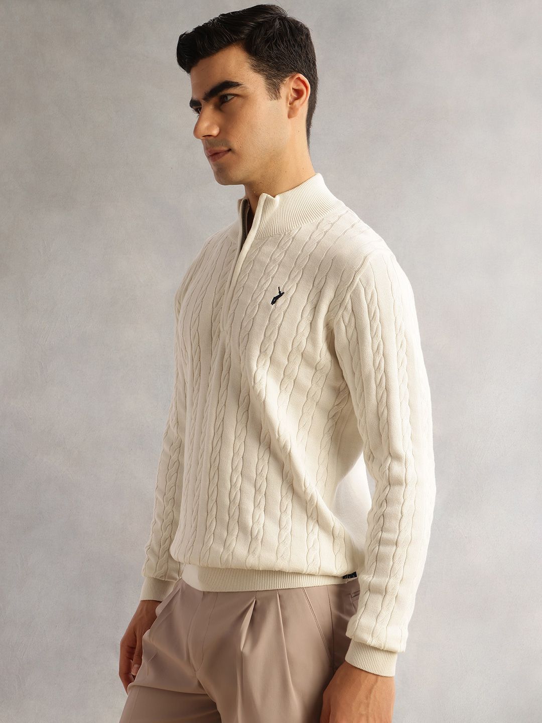 Thomas Scott Men Pure Cotton Embroidered Cable Knit Pullover Sweaters