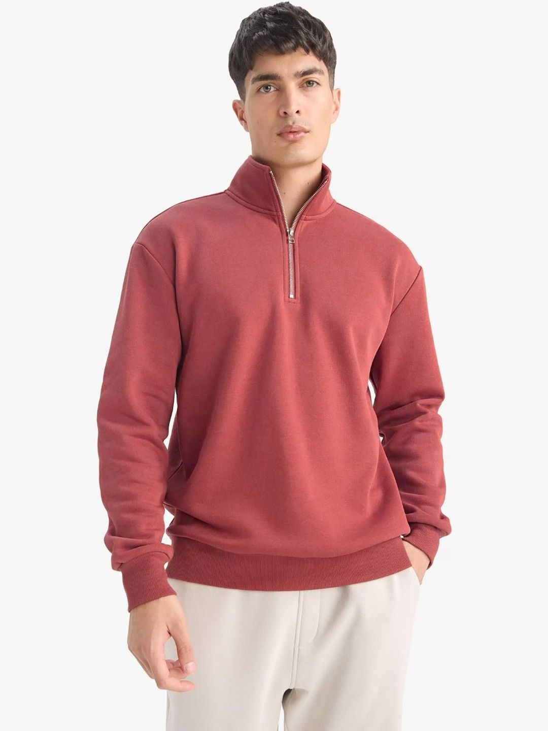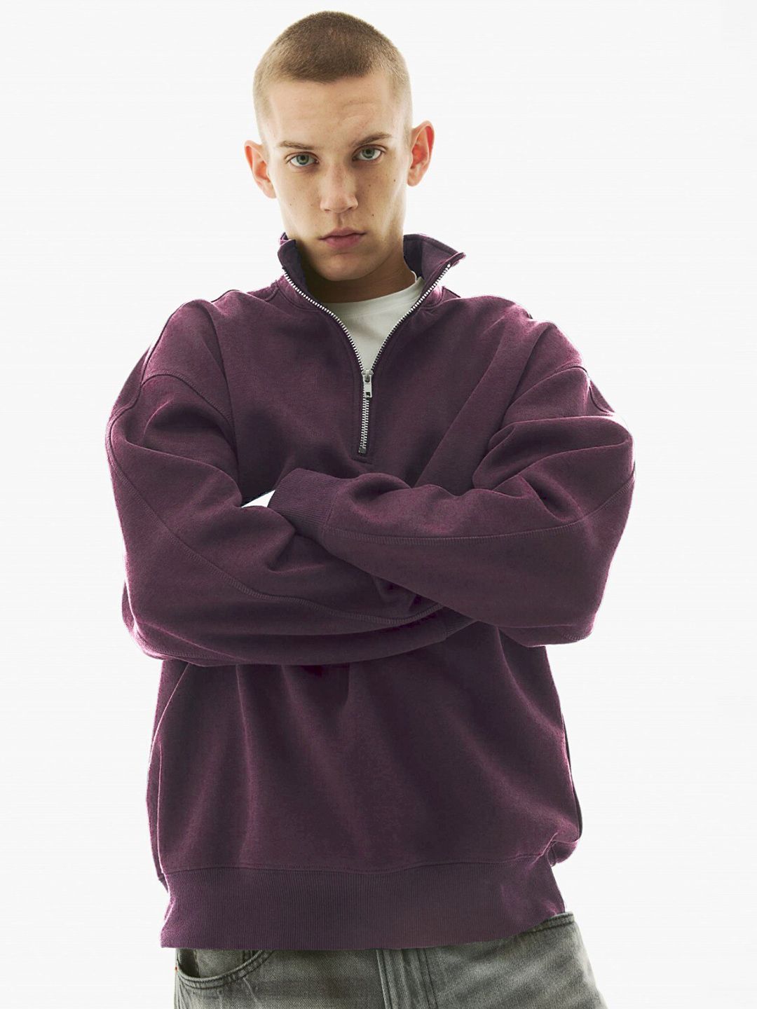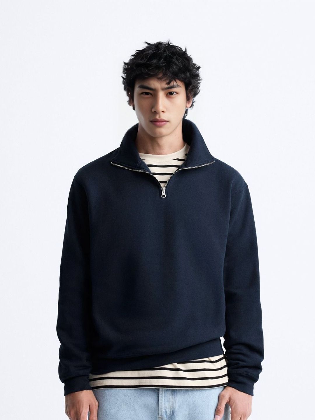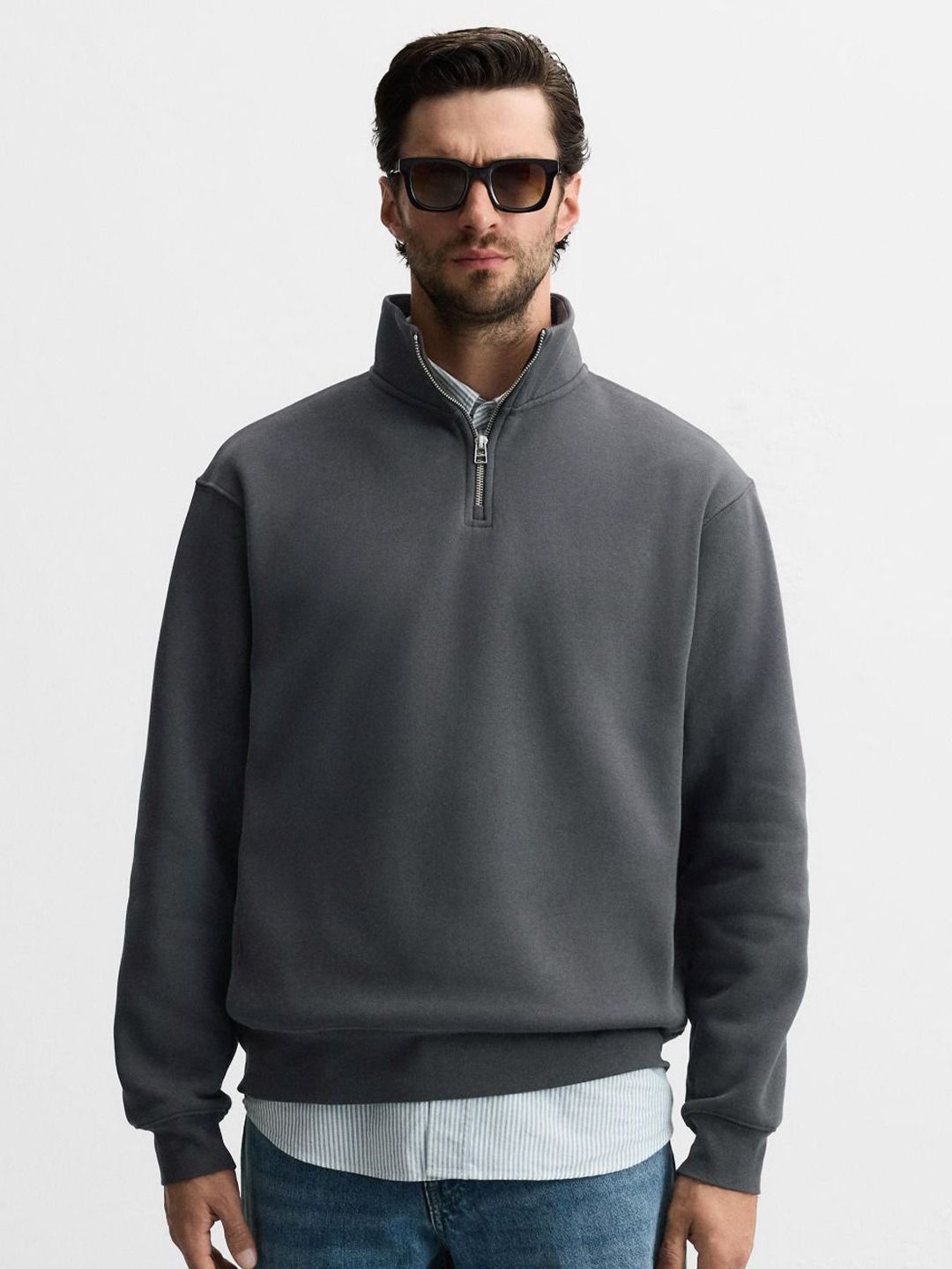 MISCHIEF MONKEY Men Mock Collar Solid Sweatshirt