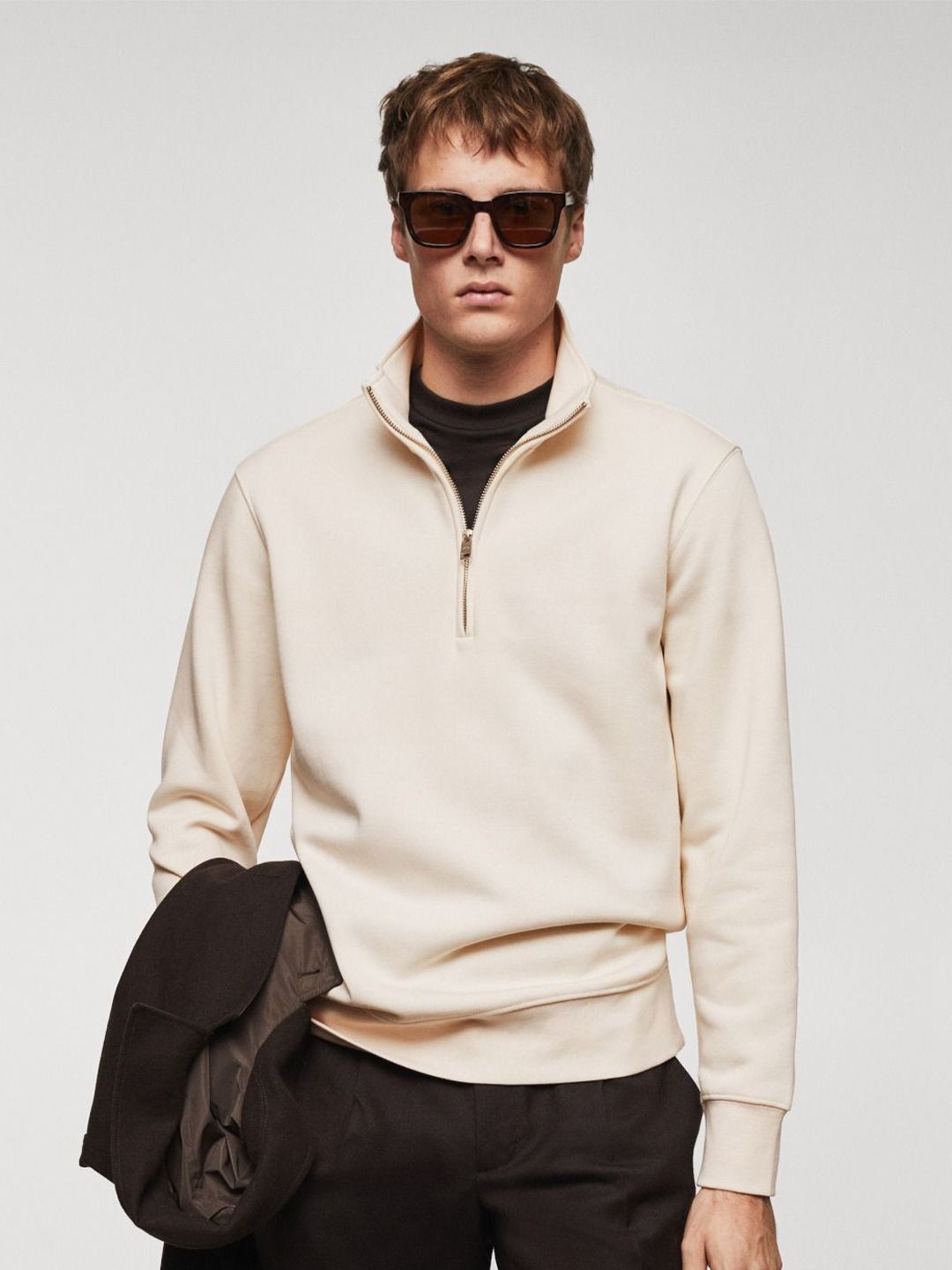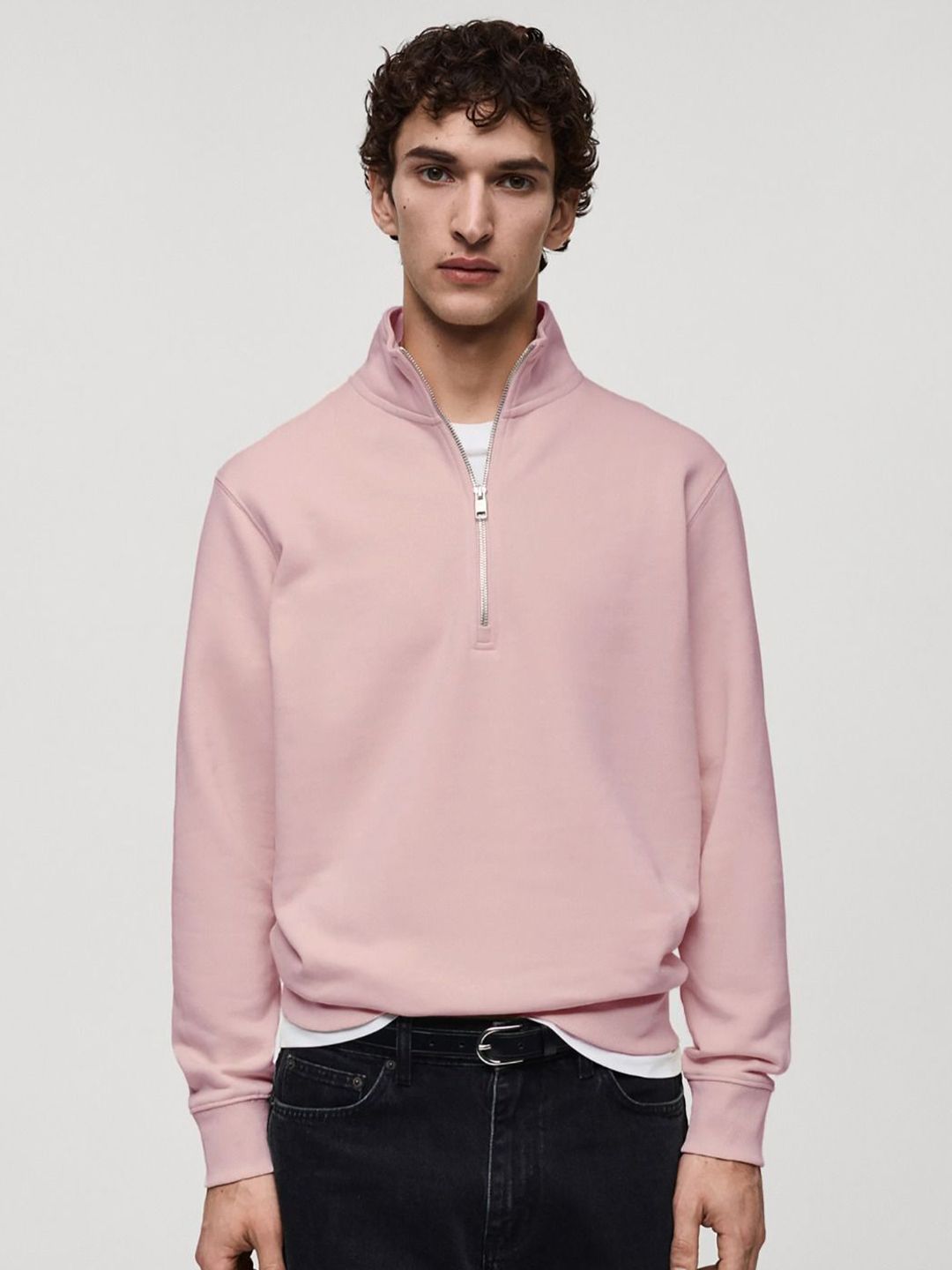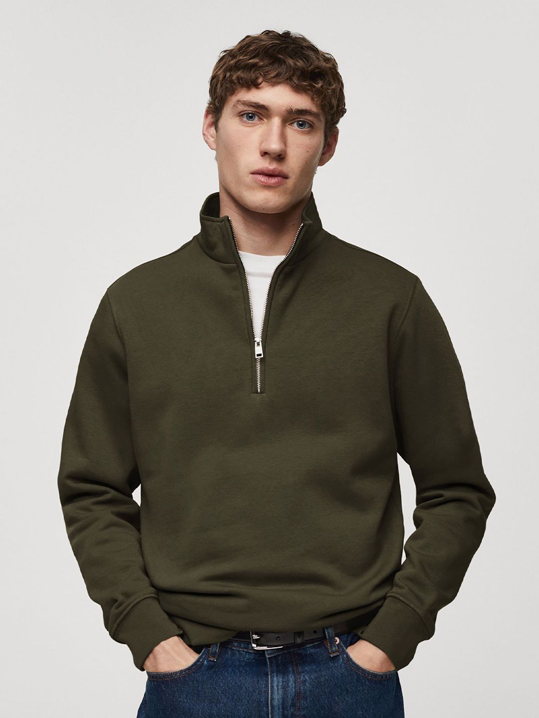 MISCHIEF MONKEY Men Mock Collar Solid Sweatshirt