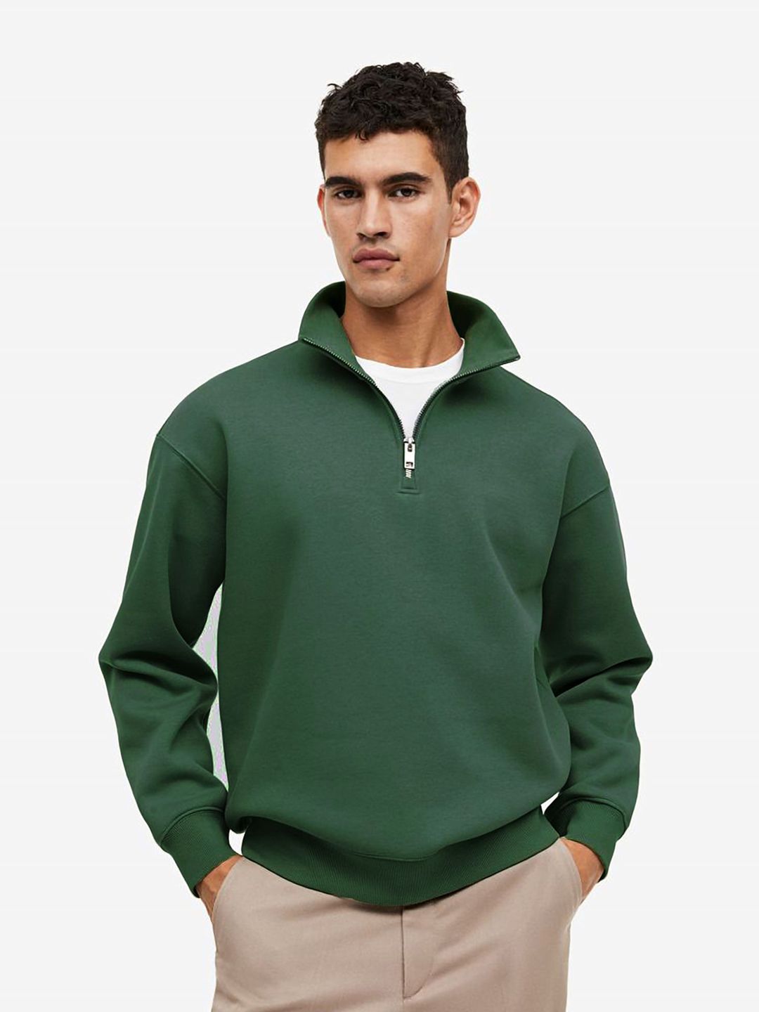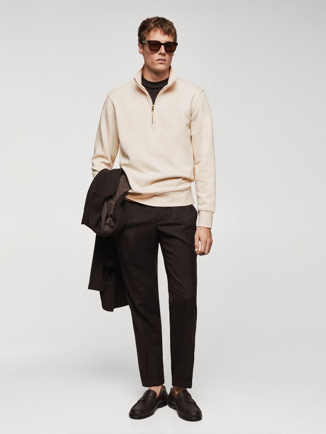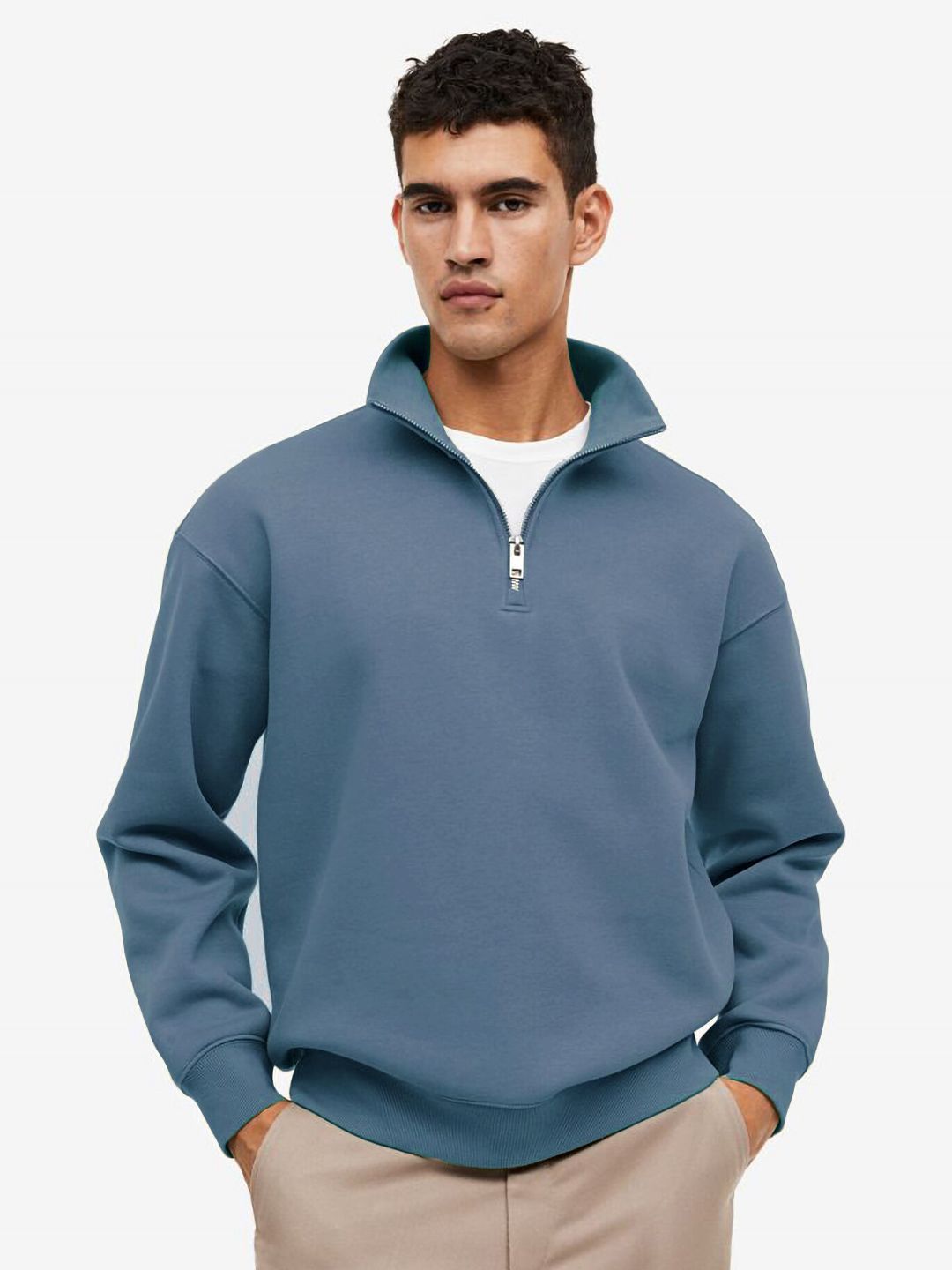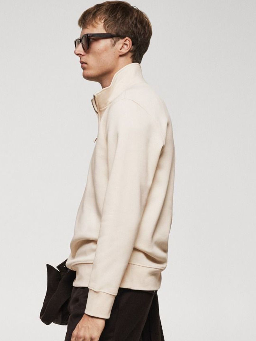 MISCHIEF MONKEY Men Mock Collar Solid Sweatshirt