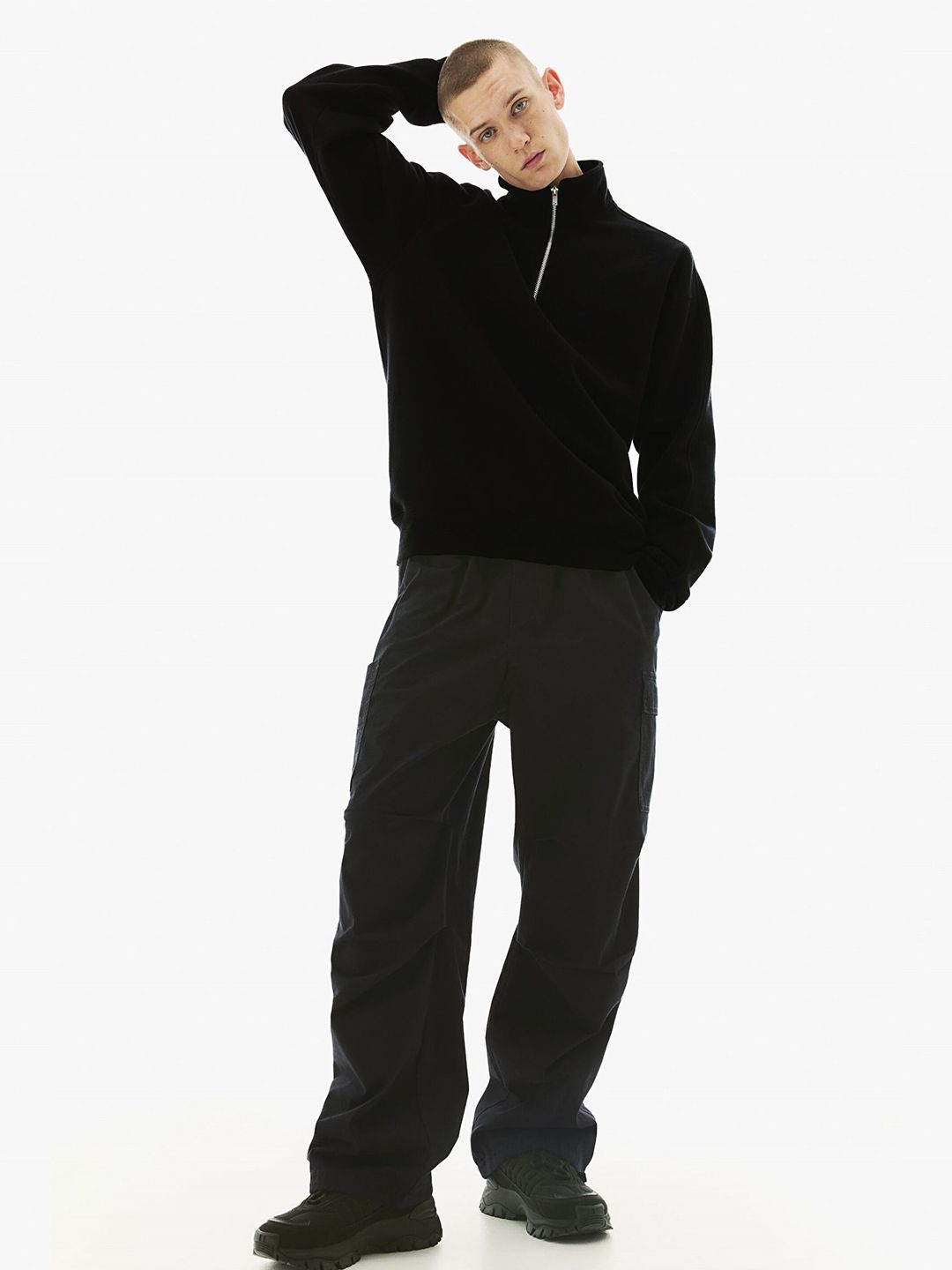 MISCHIEF MONKEY Mock Collar Ribbed Half Zipper Cotton Fleece Pullover Sweatshirt