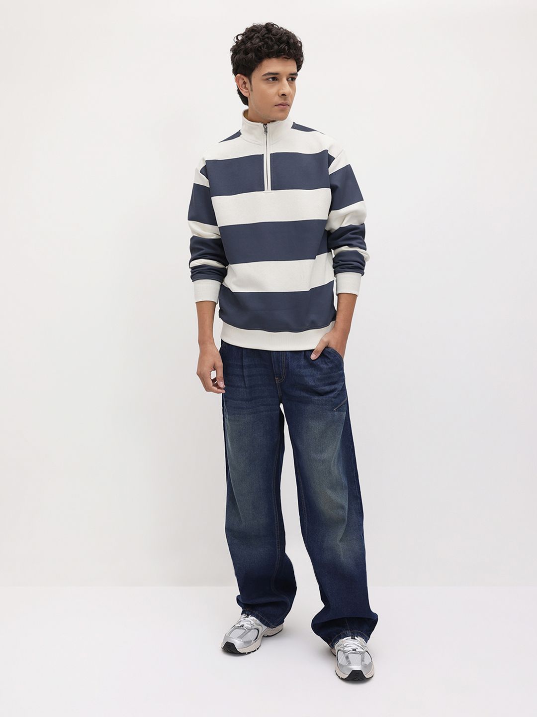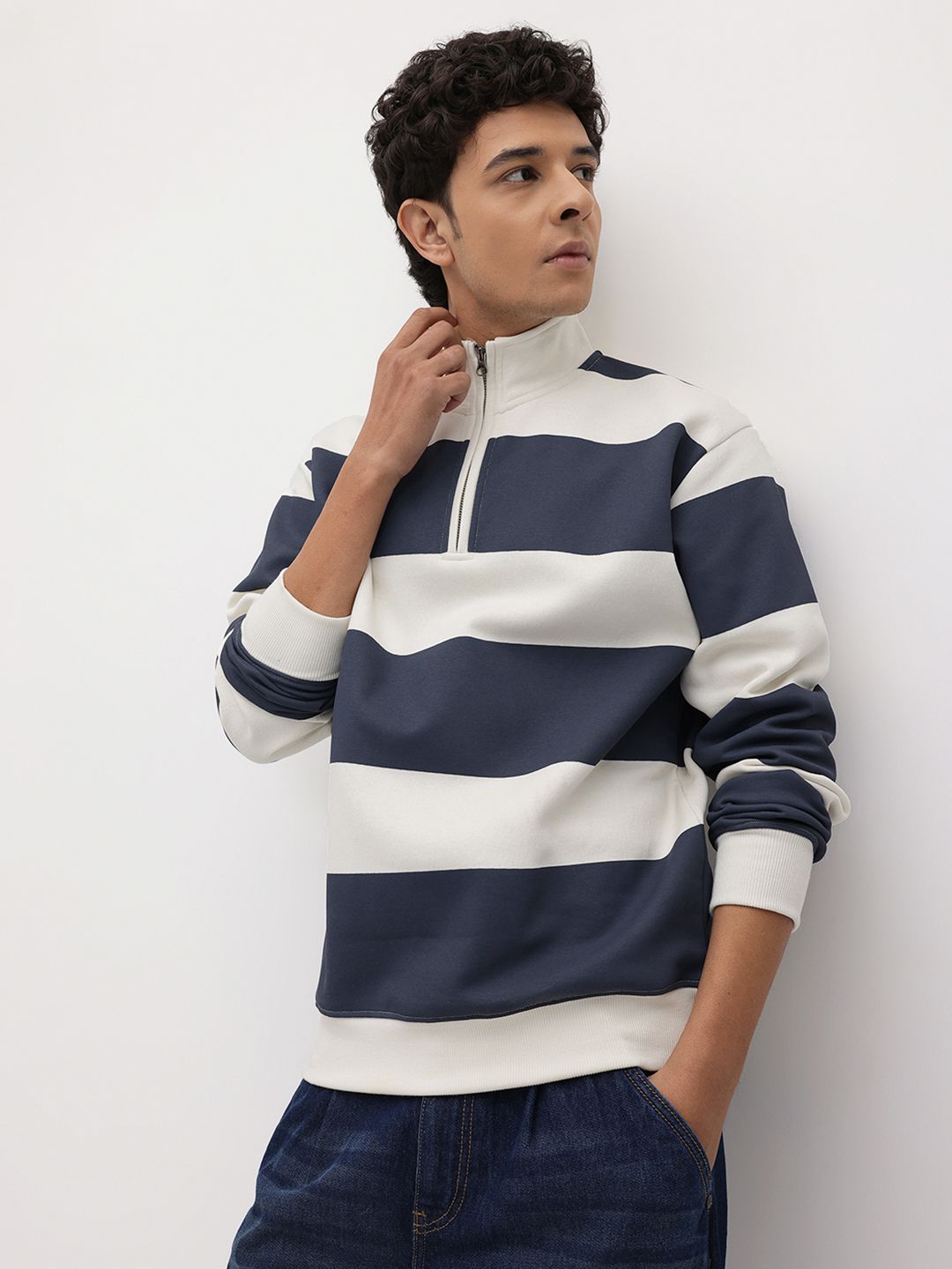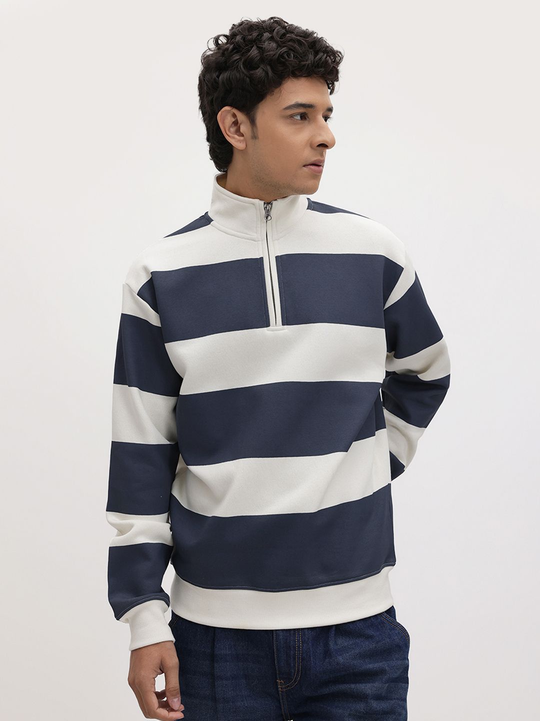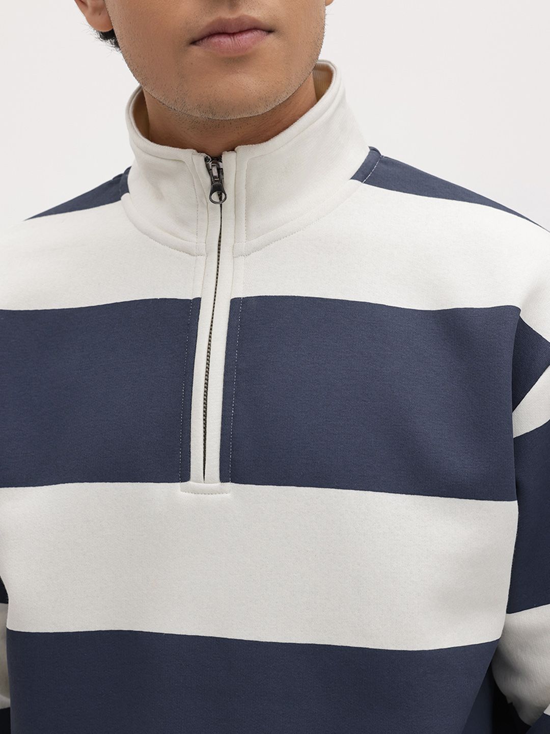 The Roadster Lifestyle Co. Striped Mock Collar Pullover with Half Zipper