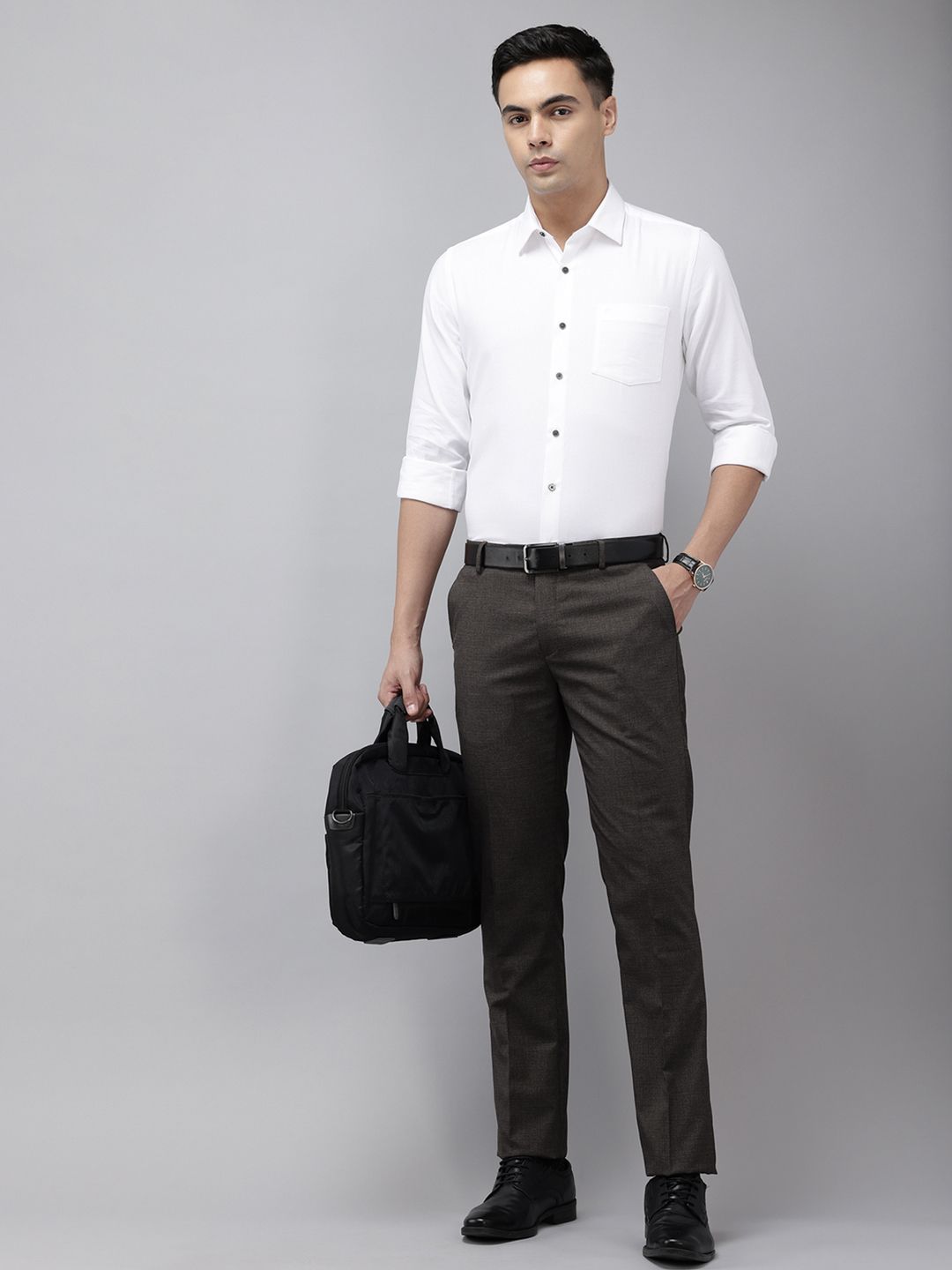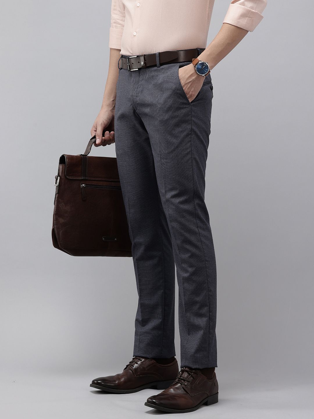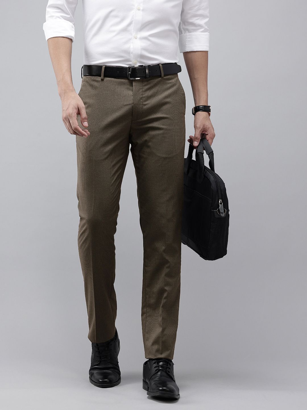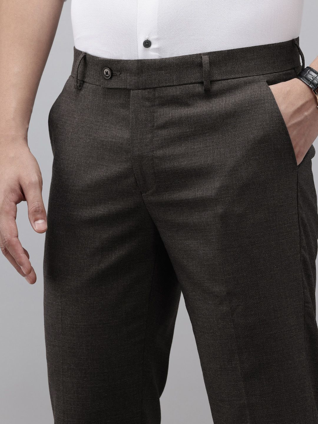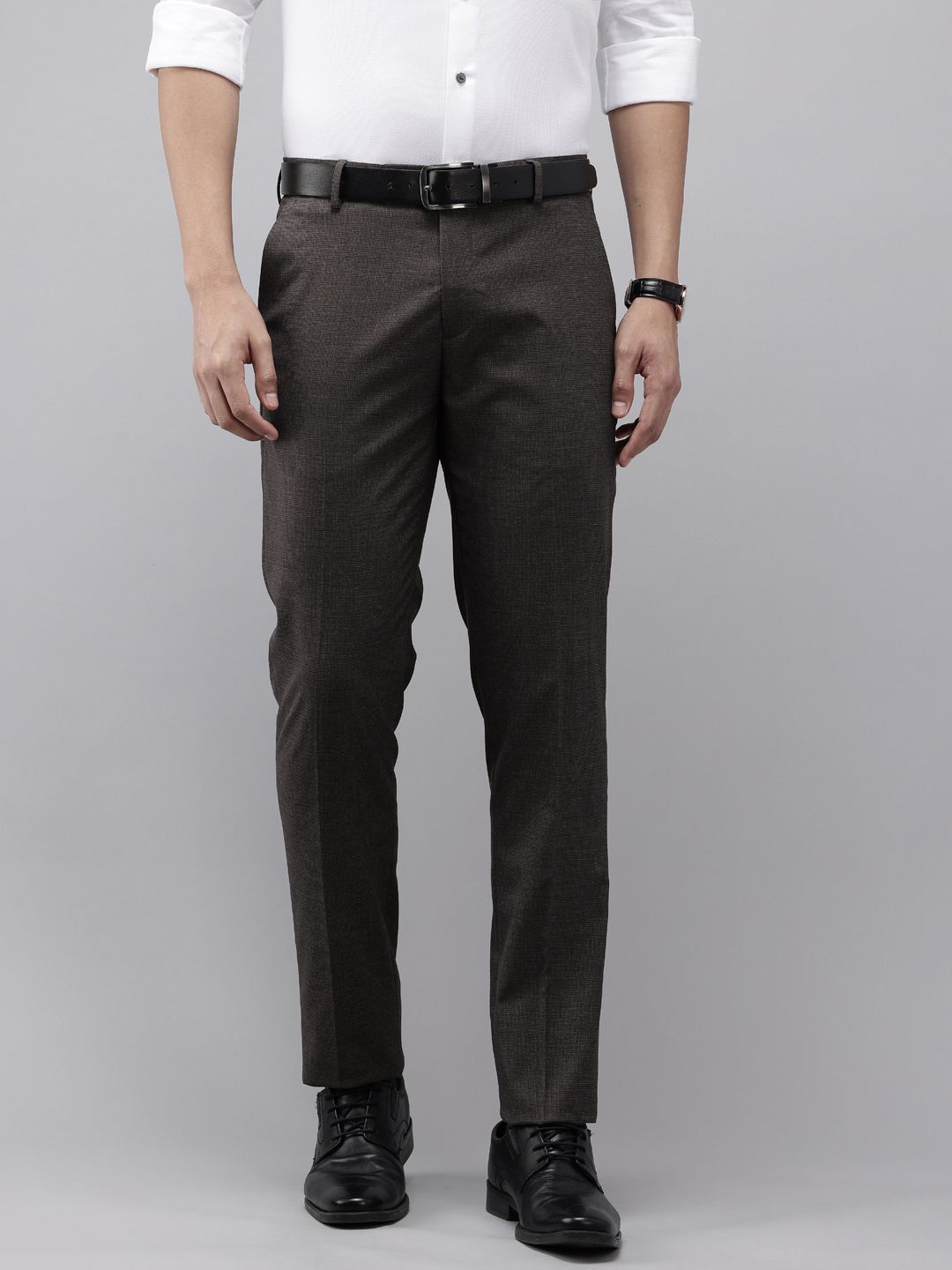 Arrow Men Hudson Tailored Fit Self-Design Formal Trousers