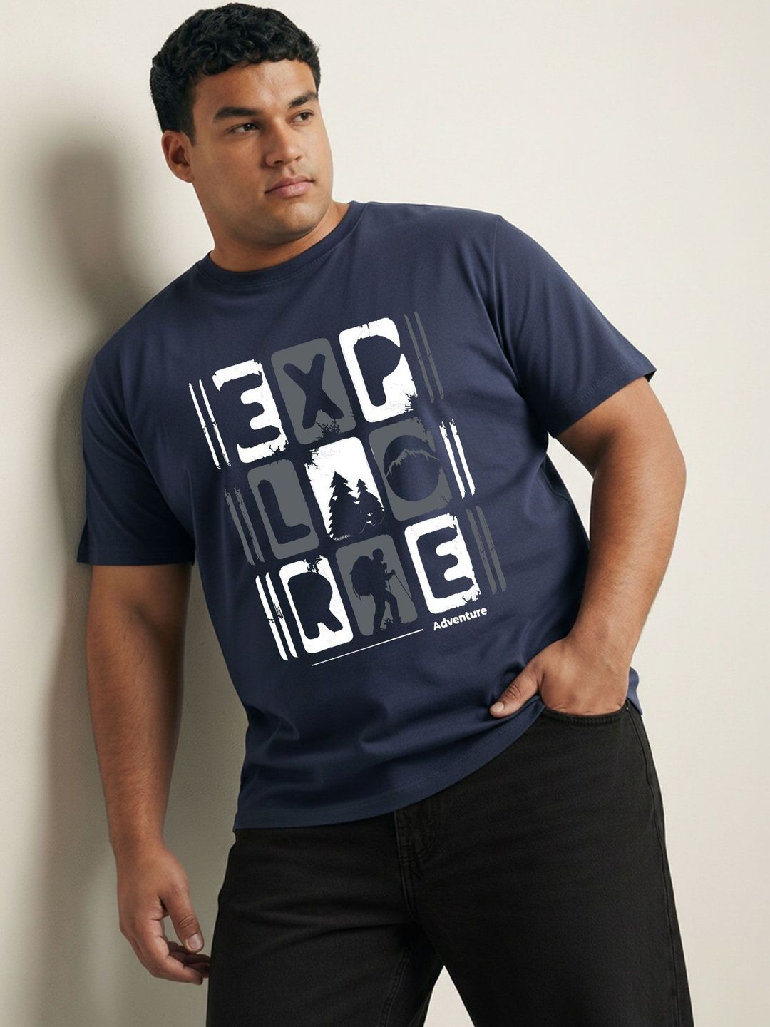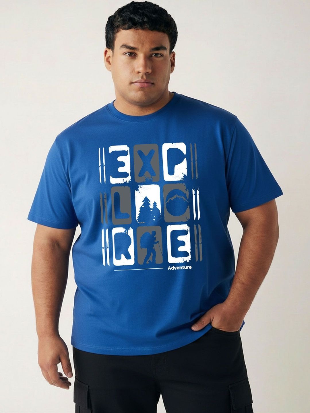 Toodle Plus Men Plus Size Pure Cotton Printed Regular Fit Casual T-Shirt